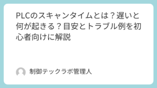 PLCのスキャンタイム(スキャン時間)を初心者向けに解説。遅いと反応が遅れる・短い信号を見逃す・たまに不具合が出る原因になります。増える原因(処理増・通信増)と対策(毎スキャン処理の削減、見逃さない設計)も紹介。