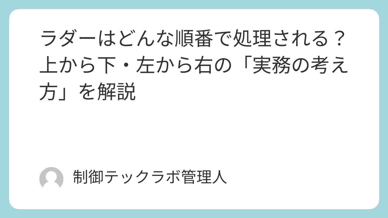 はじめに:ラダーは「論理式」だけじゃなく“順番のある処理”でもある